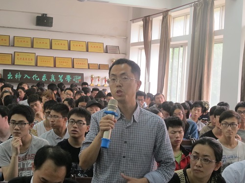 严平院长为报告会做了精彩的点评。他表示,尹教授是环境化学污染物生态毒理效应和生态风险研究方面的专家,这次报告为同学们上了生动一课,希望大家好好学习,不断培养科学严谨的思维方法,开拓进取的创新意识,努力学习、刻苦专研,积极报考同济大学研究生,继续深造,争取成为像尹教授一样的知名专家,为绿色“中国梦”做出贡献。