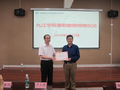 报告会开始前,举行了九江学院兼职教授授聘仪式,陶副校长为尹教授颁发了聘书。尹教授表示,非常高兴能够为九江学院的发展贡献自己的微薄之力。