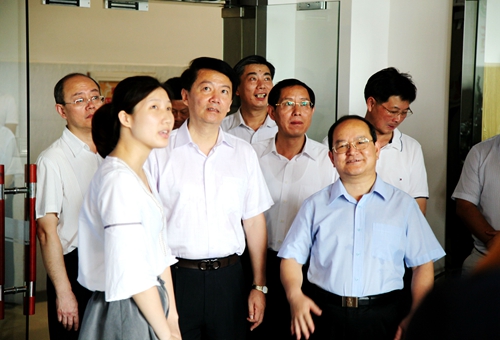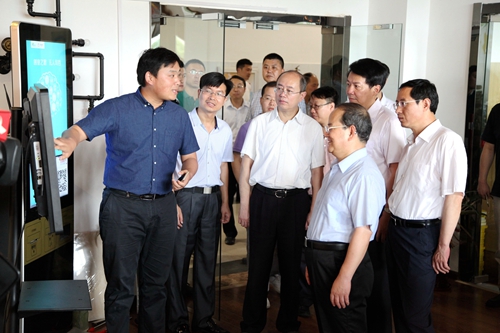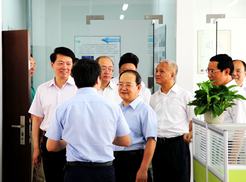 下午二点四十分,鹿心社一行轻车简从,冒着高温抵达永利yl23411集团官网厚德楼,与迎候在此的校领导一一握手问候。在厚德楼大学科技园一楼大厅,鹿心社省长认真观看了永利yl23411集团官网大学科技园宣传片,听取了学校领导的介绍;实地考察了科技园入园企业,与入园企业代表交谈,了解了他们的经营情况。目前,永利yl23411集团官网已经获批省级大学科技园,吸引了68家企业进驻,经营范围涵盖了电子商务与“互联网+”、电子信息技术、智能制造装备开发、新材料开发、精细化学品研发、生物医药研发、文化艺术创意等八大产业;园区面积16927平方米,入驻面积超过10000平方米。