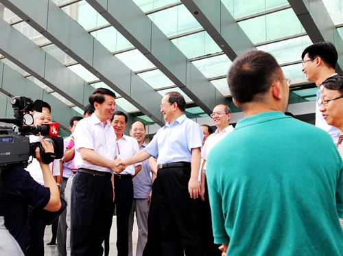 六月的九江学院校园,风轻云淡,鲜花盛开,生机盎然。6月22日下午,雨过天晴,阳光明媚,江西省委副书记、省长鹿心社莅临九江学院,视察九江学院大学科技园,参观国际合作交流展览,并与学校留学生交流。省政府秘书长、办公厅主任张勇,省商务厅厅长王水平,省政府副秘书长犹㼆,省发改委副主任王前虎,省工信委副主任谢光华,省政府研究室副主任利继忠,九江市委书记杨伟东,九江市市长林彬杨等省市相关领导陪同,学校全体在校校领导参加了活动。