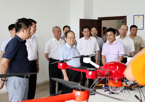 在九江乐智高机器人科技有限公司,鹿心社省长听取了公司负责人张广顺老师的介绍,询问这些机器人产品是不是他们自己动手做的,当听说这些机器人产品都是师生动手做的时,鹿省长称赞这些产品“做得挺好的”。在九江沃策科技有限公司,鹿省长听说这家公司有许多在校学生在创业时,与同学们一一握手,询问他们读几年级,学什么专业。对他们在校时就能结合所学知识进行创业实践表示赞赏。在飞天县域电商研究院,鹿心社省长认真听取了刘鹏飞对企业的介绍,询问他公司运转情况、员工总数和产品类型,听到他在短短八年时间取得那么大的成绩时,赞扬刘鹏飞是“九江学院大学生创业成功的典范”。在如燕贸易有限公司,当听说公司负责人刘伯是淘宝大王,公司光阿里巴巴承认的“淘字号”淘宝店铺就有5个,年销售额超过数亿元时,鹿心社省长十分开心。在葫芦娃网络安全认证研发中心参观考察时,听说该公司是中国领先的互联网安全认证及电子商务服务提供商时,鹿心社省长对他们取得的成绩给予了充分肯定。