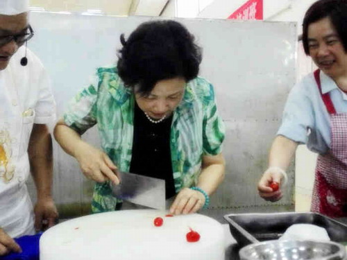 吴副校长还还亲自参与了现场红白案厨艺教学和制作,学习过程中亲切地和其他学员进行交流,并鼓励大家认真学习交流,努力丰富业余文化生活,科学改善我们的家庭膳食结构。