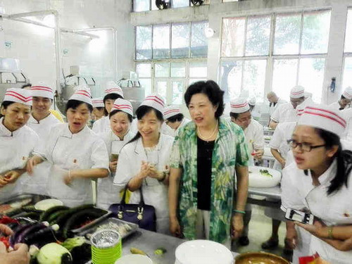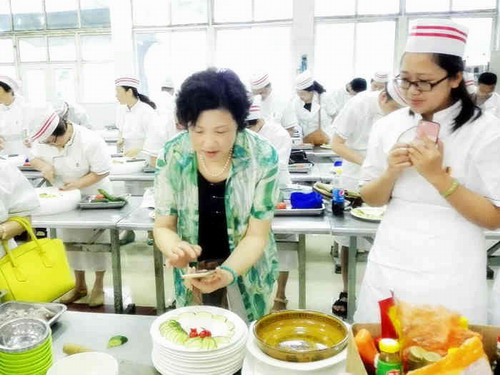 6月25日,由校工会与后勤管理处饮食服务中心联合举办的2016年教工厨艺第六期培训班在学生二食堂如期进行。上午九点,吴桃娥副校长来到培训班现场看望正教学授课大厨和教职工学员。