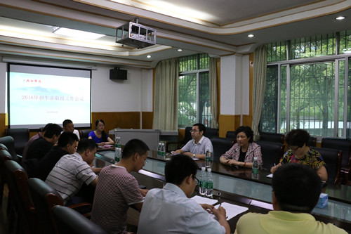 招生与就业处处长肖国丰介绍了2016年录取组的人员组成,对任务分配、职责分工等工作进行全面部署,对2016年远程录取工作流程和分工进行了说明,强调了录取工程中需要注意的问题,组织录取组全体工作人员学习了相关文件,并对2016年全国、江西省及永利yl23411集团官网的招生形势进行了交流和分析。