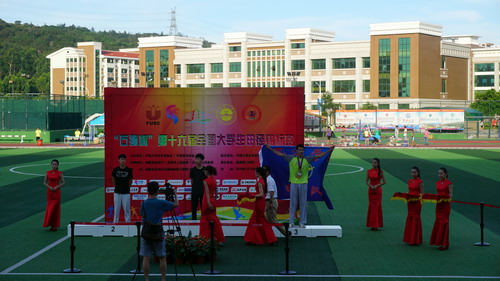 执着的训练,使得永利yl23411集团官网涌现出一批优秀的学生运动员。他们有首次参加大田赛就获得银牌仍然每天坚持骑自行车到主校区训练的政法学院的黄彬才同学(本次赛事中获得第三名);有坚持三年保持高强度训练的机材学院的梁子豪同学(本次比赛中获得男子乙组200米亚军);有扛着压力而上的土建学院的林晓龙、杜雨轩同学和化环学院的钟建同学(本次比赛中合作获得男子乙组4*100米第四名);有来自旅游学院的徐倩文、黄丹同学,来自土建学院的阳思同学和来自经管学院的段玉婷、常海姑同学组成的豪华女队(合作获得女子乙组4*400米第三名)。