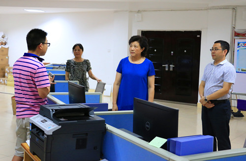 吴桃娥副校长一行首先来到信息中心远程网录取现场,看望慰问了招生录取工作人员。在录取现场吴副校长查看了招生录取过程的各类工作设备,并要求务必保证录取现场工作设备的高效使用。吴副校长听取了招生与就业处目前的招生录取情况汇报,对于全体工作人员放弃暑期的机会,为学校招生工作无私奉献的精神表示感谢,希望大家能继续发扬特别能吃苦,特别能奉献,特别能战斗的精神,一如既往地做好永利yl23411集团官网的招生录取工作。