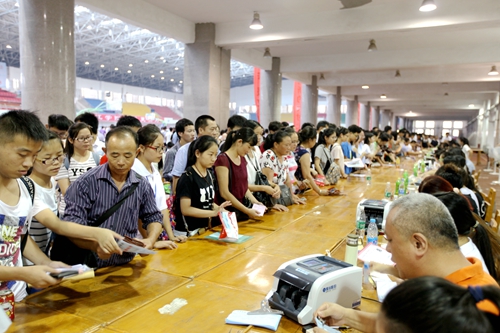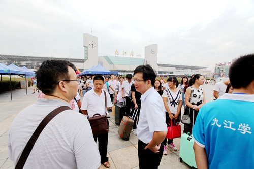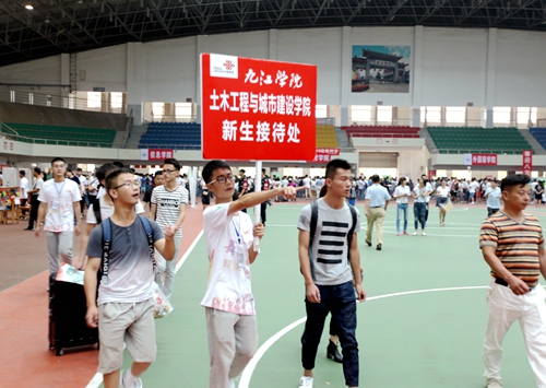 为方便提前来校新生的报到,从9月3日下午开始,九江学院的迎新工作就已经开始。3日下午就有3000余名新生来校报到。9月4日,迎新工作全面展开。一大早,学校相关各部门和各院系的迎新工作人员早早来到新生报名点各就个位,等待着来自全国五湖四海的新生的到来。