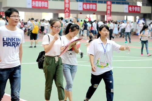 今年的新生报到注册流程更加简化和便捷,效率也明显提高。记者采访发现,偌大的室内田径馆报到大厅内没有拥挤的学生,有的只是井然有序和简洁明了。新生办理报到手续时,只需提交本人身份证和录取通知书即可。工作人员扫描读取录取通知书上的条形码,就可以获得学生的全部信息,哪个学院、哪个专业、年龄、生源地等内容一应俱全。这种全新的迎新系统将很多工作都做了前置处理。