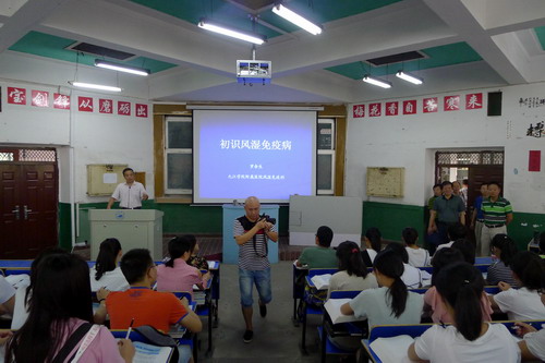 杨焱林副校长来到庐峰校区检查第一课情况。
