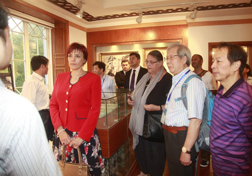 报告会结束后,在校党委书记郑翔,副校长杨耀防的陪同下,与会的中外专家、学者到两南山参观了陶渊明研究院和陈寅恪研究院。