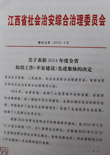“十二五”期间,在校党委、校行政的领导下,学校安全稳定(综治)工作以建设平安校园为目标,不断强化安全意识,加大安全宣传教育,加强基础建设的投入,重视安全稳定队伍建设,注重日常安全管理,强化校园安全隐患排查。五年来,通过保卫人员辛勤的工作和全校师生的共同努力,学校安全稳定及综治工作取得了长足的进步,得到上级有关部门的好评与肯定。先后被评为“九江市消防先进单位”、 “九江市社会治安综合治理工作先进单位”、 “全省平安校园建设先进单位”、 “全省平安校园建设示范学校”和“全省综治工作(平安建设)先进单位”等称号。