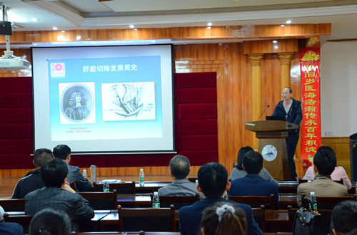 10月14日下午,冷教授又为临床医学院/附属医院开展“现代肝切除的技术”的专题讲座。讲座由张南华书记主持,临床医学院/附属医院及周边县市医院百余名医师参加了讲座。讲座中,冷建军教授系统讲解了肝切除的理论知识及实践操作,并与在坐医师开展交流互动,整场讲座深入浅出,例证丰富,气氛热烈。讲座结束,冷教授还向母校捐赠了个人学术专著及博士毕业论文报告。