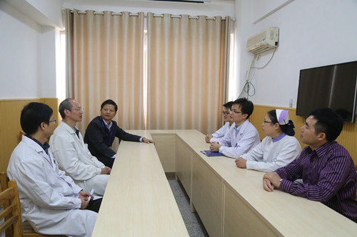 冷教授对母校情谊深厚,对患者十分关心。离开临床医学院/附属医院前,在张南华书记陪同下,冷教授还前往临床医学院/附属医院肝胆外科查看手术患者的恢复情况,并依据责任医师对患者这几天的术后指征汇报,对后续治疗及护理工作进行了指导。