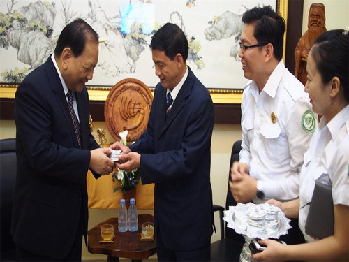 柬埔寨王家研究院孔子学院院长谢莫尼勒、中方院长夏修龙对代表团的来访表示热烈欢迎,并介绍了柬埔寨孔子学院的汉语教学、文化交流、学术研究等情况,播放了柬埔寨孔子学院的宣传片和文化活动短片。白主任委员十分关心孔院的发展,不时插话提问,并询问了在孔院任教的志愿者老师教学和生活情况,对孔院的工作给予了赞赏,希望孔子学院今后在中柬文化交流方面多做贡献。