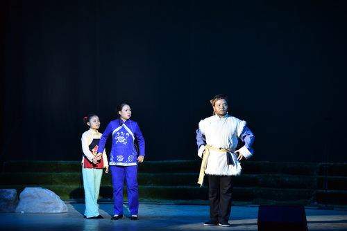 演出结束后,学校领导及嘉宾上台与演出人员一一握手并合影留念。