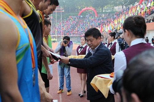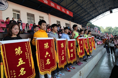 经过两天半的激烈角逐,在圆满完成了所有比赛项目后,九江学院第十五届运动会于11月5日上午10:30胜利闭幕。副校长纪岗昌、陶春元、杨焱林、夏启国等校领导和相关部门负责人出席了闭幕式,并为获得精神文明奖,教工优秀组织奖,和田径、团体总分奖的单位颁奖。闭幕式由杨焱林副校长主持。