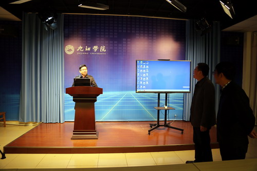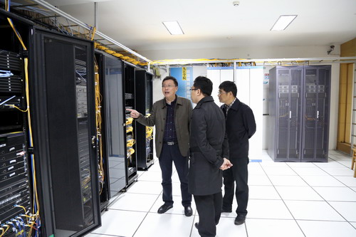 梅龙宝教授对来宾一行表示热烈欢迎,并简要地介绍了信息中心的基本情况,重点介绍了学校有线网络、无线网络、一卡通、数字校园、平安校园和数字媒体等项目的建设和应用情况。