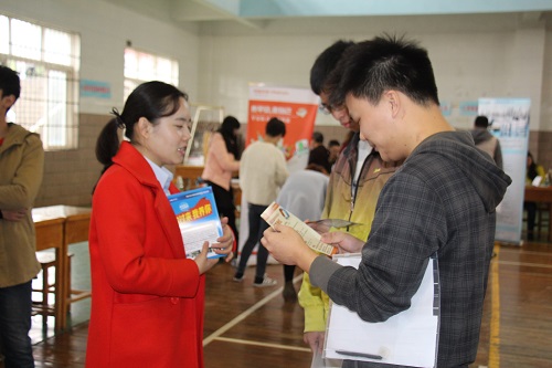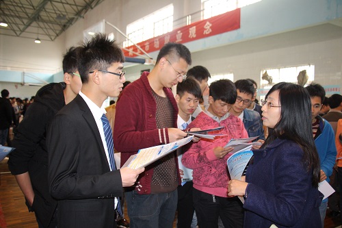九江世明玻璃有限公司招聘点前,吸引了大量的毕业生。该公司提供的岗位主要有焊接技术员、工艺员、QC等,毕业生表示更愿意选择一些与自己专业对口的工作岗位,希望自己在大学所学的知识能够学以致用。校友企业义乌阳普网络科技有限公司也吸引了众多毕业生们的眼球。面对前来招聘的学长,毕业生倍感亲切,与其进行了深入的交流。其公司招聘负责人周松谈到:我还是愿意回到母校招收人才,一是信赖机材学院对人才专业知识培养,二是希望为学弟学妹们提供一些工作岗位。