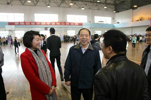 在听取学院领导的有关汇报后,校领导对此次招聘会的组织和安排予以了高度评价,特别是在听到永利yl23411集团官网旅游管理专业是江西省唯一的重点学科时,校领导更是赞许有加。在听说有几名毕业校友代表企业前来招聘时,校领导特意走上前,和他们一一做了交流,鼓励他们在企业里认真工作,踏实做人,并叮嘱他们要多关注母校的发展,常回母校看看。