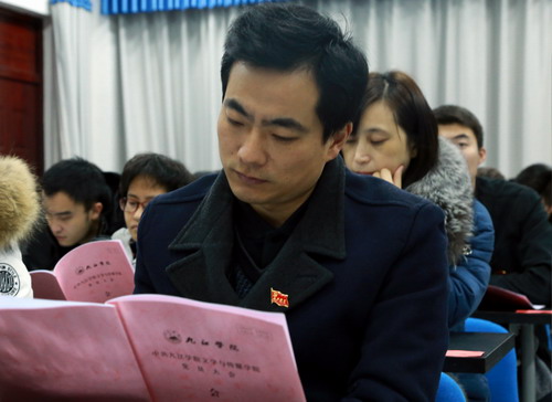 大会酝酿通过了文学与传媒学院新一届党委委员候选人名单,表决通过了总监票人、监票人名单。根据《中共九江学院文学与传媒学院党员大会选举办法》,以无记名差额选举的方式,由全体正式党员投票选举产生了新一届中共九江学院文学与传媒学院党委会委员(以姓氏笔画为序):田中兴、汤红莲、朱全国、吴国富、吴疆、周子渊、郭英俊。