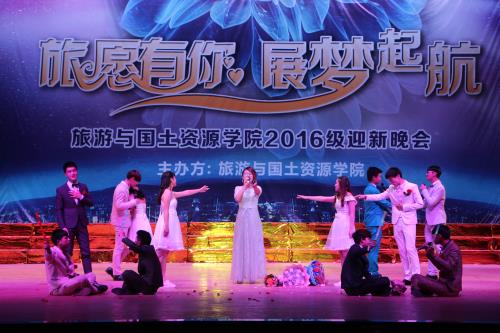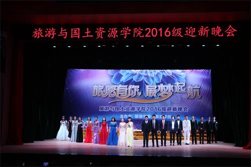 “旅愿有你,展梦起航”。11月在24日晚,旅游与国土资源学院在主校区大礼堂隆重举行了2016级迎新晚会。副校长纪岗昌、王万山到场观看,学生处、校团委负责人、旅游与国土资源学院党政领导以及学院全体师生共同观看了演出。