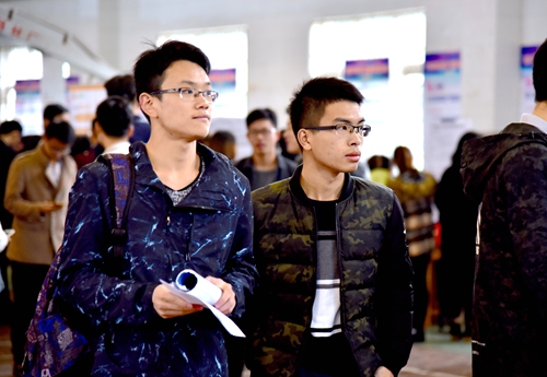 在招聘会现场可以看到,众多学生手捧着简历,穿梭在招聘单位之间,良好的交际能力、彬彬有礼的举止和和扎实的专业基本功为招聘单位所称赞。招聘会不仅招引了毕业生前来投简历,还吸引了大一、大二学生前来观摩。