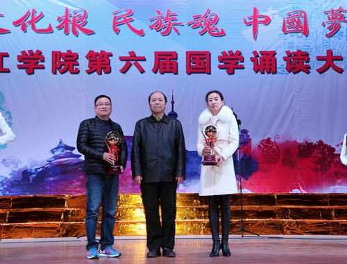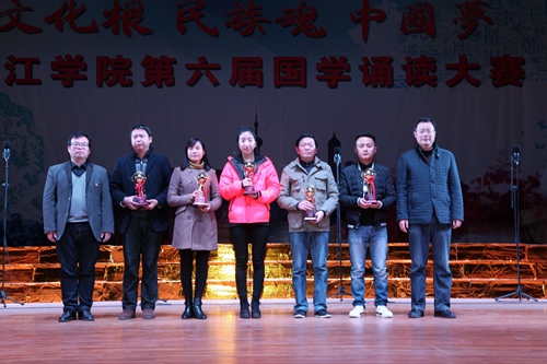 经过近2个小时的角逐,土建学院的《苏武颂》和会计学院的《晏子说》获得一等奖;外国语学院的《满江红》、文传学院的《蜀道难》、旅游学院的《燕歌行》获得二等奖;政法学院诵读的《将进酒》、药学与生命科学学院的《兰陵王.柳》、护理学院的《李时珍传》、经济与管理学院的《汨罗魂》、临床医学院的《董奉杏林》获得三等奖;国际交流学院的《国学新说》获得特别表演奖。