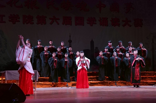 每年永利yl23411集团官网的国学活动有30多项、100多场次,2万多人次参与其中。一大批国学班、国学社、诗会雅集、宣讲团等等举行了丰富多彩的活动,进一步推动了国学的普及、研究、传播和交流。在众多的国学活动中,每学期一次的国学诵读大赛,成为了全校师生最引人注目的品牌活动。品读经典,因为经典中有大千世界;诵读经典,因为经典中有人间大义;对话经典,让人们拓展视野、启迪心智;传承经典,使人们陶冶品行、成人成才。