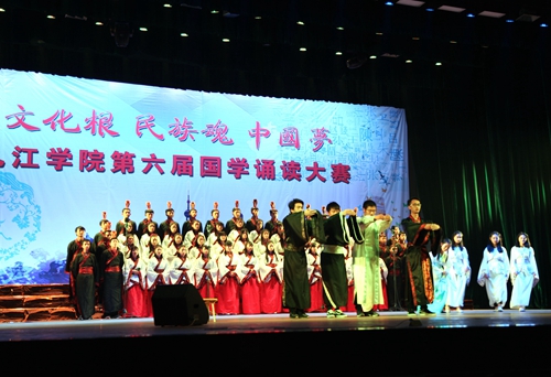 会计学院的《晏子说》,同学们用一问一答的表现手法,充分地展示了春秋战国著名的政治家、外交家、思想家晏子的形象。其聪颖机智、能言善辩,内辅国政,屡谏齐王,捍卫了齐国的国格和国威。经济与管理学院的所演绎的《汨罗魂》,生动地展现战国时期的爱国诗人屈原,他以一声“路漫漫其修远兮,吾将上下而求索”呐喊和《离骚》、《天问》、《九歌》等不朽的篇章,成就了其在人世间的绝唱。而旅游学院的《燕歌行》,又时空穿越般地把我们带回了唐朝。