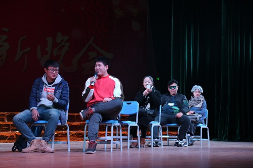 此次晚会设有微信上墙留言活动,发送消息到微信平台即可在现场的大屏幕上互动,还随机进行由就业、创业委员会提供的抽奖活动。