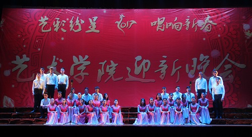 12月15日晚,艺术学院迎新暨2017年元旦晚会在大礼堂举行。副校长王万山、夏启国,校团委副书记赵宇剑,艺术学院党政领导、全体教师老师以及2016级全体新生一起观看了本次晚会。