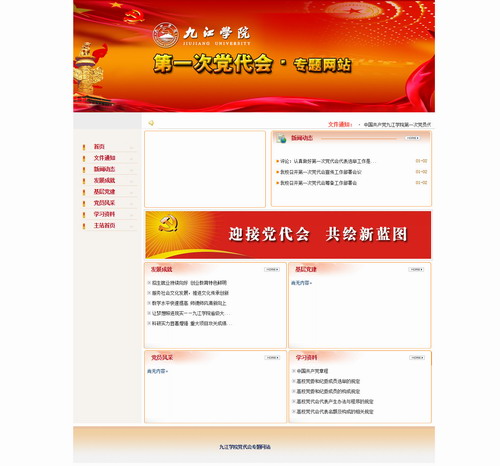 专题网站将全面回顾学校党委团结带领广大师生员工走过的光辉历程,展示学校发展成就;聚焦基层党组织和优秀党员风采,倾听党员代表之声,与全校师生员工共同关注党代会的召开。专题网站开设“新闻动态”、“发展成就”、“基层党建”、“党员风采”、“学习资料”等栏目。