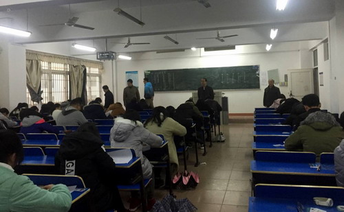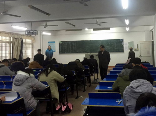 1月5日,副校长陶春元在教务处处长马明亮、教务处副处长漆晗东的陪同下就期末工作深入教学楼巡视,检查考试的安排、考风考纪、考场秩序和考试安全等工作。