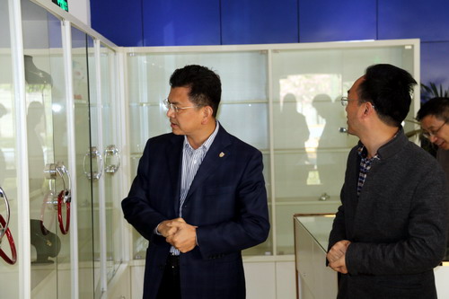 在电子商务学院创业实训与实践基地展示厅,刘校长看到陈列架上展示的学生作品非常感兴趣,详细了解了学生在创新创业方面的有关情况,并对所做工作给以了肯定,对今后工作提出了相关要求。