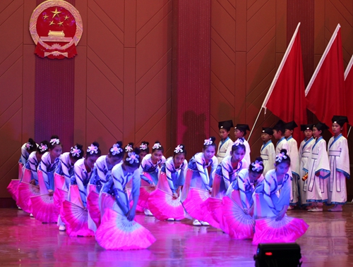 艺术学院王荇荇老师带来的《我爱你中国》,叶树雯、王蕾、理查德·波尔等老师带来的音诗画《梁祝》,郭泗茂老师带来的《中国梦》等节目的精彩表演,掀起了晚会一个又一个高潮。晚会上,官莲小学也为我们带来了国学诵读表演《云水禅心》。
