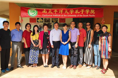 15日上午,在中国驻瓦努阿图大使馆秘书武恒旭的陪同下,巡讲团一行来到南太平洋大学瓦努阿图校区孔子课堂开展座谈和讲座,中瓦友好协会代表 、维拉港中华公会代表以及孔子课堂教师参加了活动。