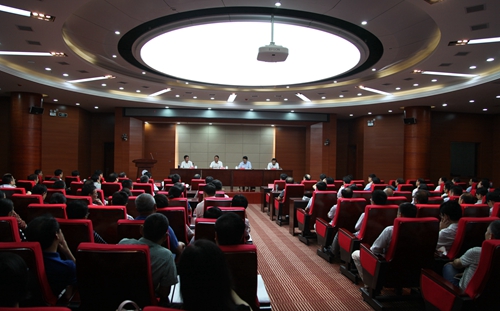 5月31日上午,学校在逸夫图书馆学术报告厅召开副处以上领导干部和正高职称人员大会,江西省委组织部副部长、省委非公有制经济组织与社会组织工作委员会书记周训国宣布省委对九江学院主要领导进行调整的决定:赵伟同志任九江学院党委书记。大会由江西省教育厅副巡视员王晓阳主持。九江市委常委、组织部长李洪涛,市委组织部副部长、市委村建办主任胡运龙,江西省委组织部干部四处副处长申道义,江西省教育厅人事处(组织部)主任科员朱易、九江市委组织部干部四科科长郭宇出席会议。学校在家校领导魏立平、纪岗昌、王万山、陶春元、杨焱林、杨耀防、夏启国、查振华,全校副处以上干部、正高职称教师参加了大会。