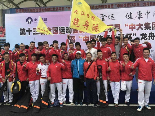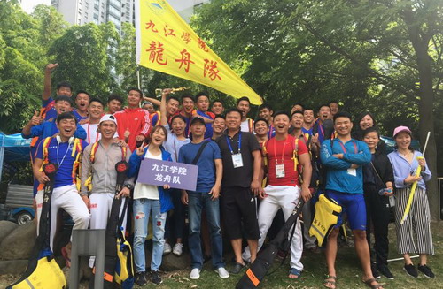 由国家体育总局社会体育指导中心、中国龙舟协会、中央电视台体育频道主办的 2017年中国龙舟公开赛于2017年5月5日在荆州市启动,此赛事与中华龙舟大赛是国内最高水平的龙舟赛。永利yl23411集团官网龙舟队参加了荆州和上海两站比赛,众多参赛队中既有顺德乐从、南海九江等国内顶尖职业队,也有北华大学、江汉大学、华中科技大学、上海海洋大学等传统的大学生劲旅。永利yl23411集团官网龙舟健儿在缺席八位主力的情况下(八名队员抽调到省队,备战天津全运会),不畏强敌、奋勇争先,取得了200米直道竞速第六名的好成绩,再次刷新了该项目的最快纪录。参加高水平的职业赛事,与最高水平的队伍同场竞技,教练员和队员们既能够接触到最科学、先进的技战术,又能很好的磨练队员的意志品质,使队员们在技术和心理上都有了很大的进步。永利yl23411集团官网龙舟队以优良的运动成绩、良好的精神风貌赢得了广大观众的掌声也受到多家媒体的采访,很好的宣传、推介了九江学院,一定程度上扩大了永利yl23411集团官网的影响力。