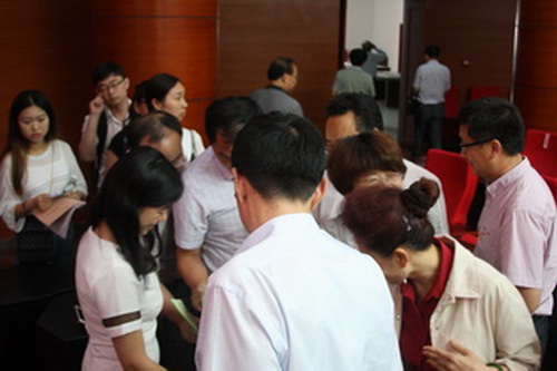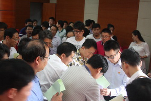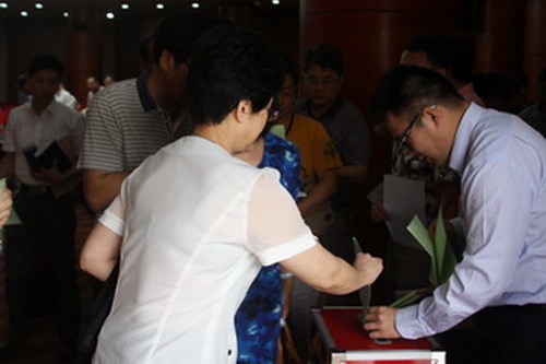 各基层党委汇报后,与会人员根据参照考评标准,填写了测评表。