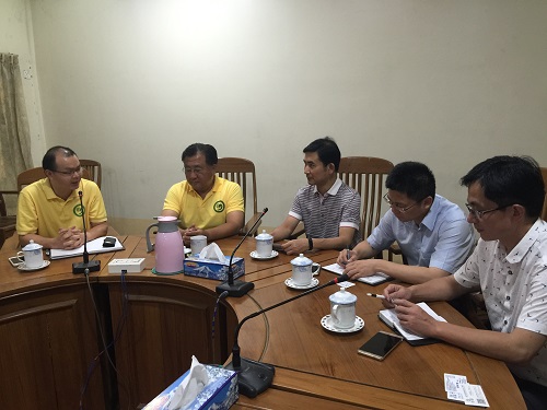 云华师范学院董事长尚兴玺代表学校热烈欢迎魏立平副书记一行对云华师范学院的访问,详细地介绍了云华师范学院的建立过程,在校生的规模,培养学生经费的来源,学生学习经费的赞助情况,以及缅甸华校的整体情况。尚兴玺指出,在曼德勒,无论是华人还是缅族都喜欢学习汉语,无论是小学、初中,还是高中,其汉语教育都得到当地人民的认可。但缅甸华文教育教师缺口较大,希望能得到更多关注。