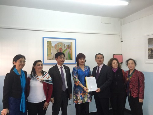13日至15日,访问团一行分别考察访问了拉普拉塔国立大学及其孔子学院、布宜诺斯艾利斯大学及其语言中心、孔子学院以及当地华人华侨中文学校。杨副校长与拉普拉塔市政府人文教育基金会主席Rafael Velazquez、布宜诺斯艾利斯大学副校长RobertoVillarrue、布大国际处负责人Luis Morlegan,以及两所大学孔子学院中外方院长和新太阳全日制中西英三语学校贾薇校长等进行了深入的交流与探讨,并用ppt介绍了九江市和九江学院基本情况。访问团其他成员还就世界名山学术研究、生物工程及技术、医药开发和中华文化传播等开展了交流与探讨。在阿根廷访问期间,访问团一行还参观考察了拉普拉塔大学对外经济及旅游系、中西英三语学校中小学生部及与其合作的私立莫隆大学法律系、布大经济学院和语言中心以及两所孔院办学场所等机构和设施,并与新太阳中西英三语学校签署了汉语国际教育海外培训实习基地框架协议,与布宜诺斯艾利斯大学语言中心签署了合作交流备忘录。