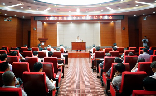 三是营造良好氛围。学校还通过各个途径全面展示党的十八大以来社会主义现代化建设事业和学校改革发展成就,为迎接党的十九大胜利召开营造良好氛围。开学伊始,学校全面贯彻中央和省委关于加强和改进高校思想政治工作的部署,努力开创学校各项事业发展的新局面。9月29日和10月10日,学校先后隆重举行“浩鹏明德奖”和“新华教育奖”捐赠仪式,用优秀校友和九江籍知名企业家捐资助学的生动事例教育广大师生,要立德树人,感恩社会,回报社会。10月11日,学校隆重举行抗洪英雄事迹报告会,用抗洪英雄们的感人事迹、无私品格和崇高精神,感染、影响和激励全校师生,为他们上了一堂生动的思想政治教育课。9月25日,学校召开党委中心组(扩大)学习会,邀请中国社会科学院马克思主义研究院党委书记、院长邓纯东教授来永利yl23411集团官网作《高度重视国家意识形态建设 努力巩固马克思主义指导地位》专题报告。近期,学校还将举办“赣籍开国将军百战图”大型创作展览巡展、“第七届金秋教职工书画摄影展”等多项活动迎接党的十九大。