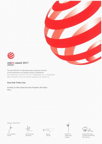 10月18日,素有设计界“奥斯卡”之称的德国红点奖颁奖典礼在新加坡红点设计博物馆举行,永利yl23411集团官网艺术学院张钰淇老师的作品“Easy Push Trolley Case”喜获red dot奖。