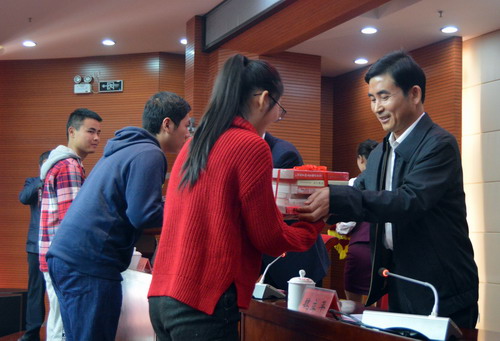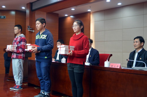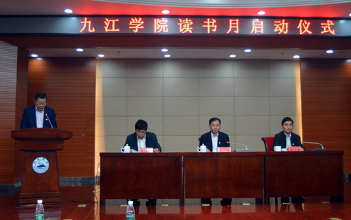 在热烈的掌声中,赵伟宣布九江学院读书月正式开幕,并和与会领导一起为联系班级赠送了书籍。