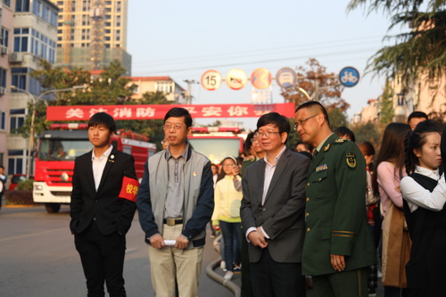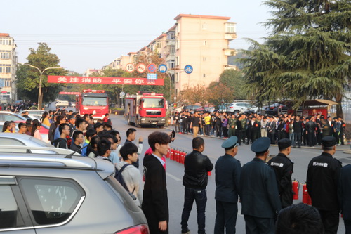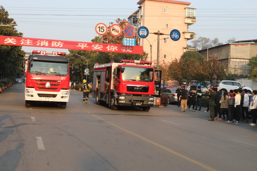 今年的全国“119消防日”主题是“关注消防,平安你我”。为动员全校师生共同关注消防安全、参与消防宣传,11月8日下午,永利yl23411集团官网与市消防支队共同在主校区举行2017年消防安全宣传暨应急疏散演练。副校长王万山,九江市消防支队重点科科长罗威、高级工程师王春三,濂溪区消防大队大队长江猛等与千余名师生及消防官兵共同参加了宣传和演练。