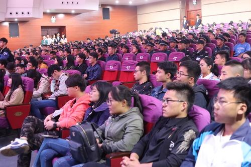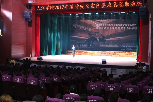 演习开始前,濂溪区消防大队蔡一韬参谋在主校区大礼堂向参加此次活动的千余名师生讲解了如何正确报火警、如何安全疏散逃生及扑灭初期火灾等消防安全常识。