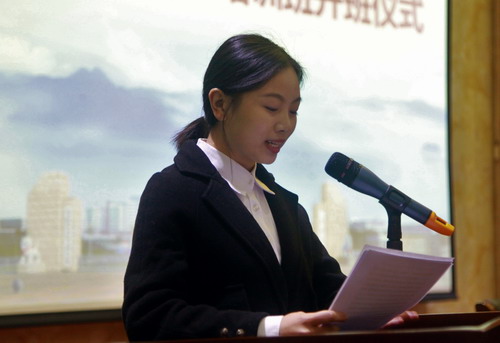 发展对象代表土木工程与城市建设学院徐诗芬同学在开班仪式上作了表态发言。