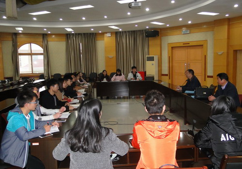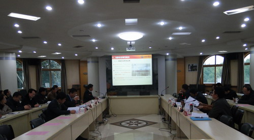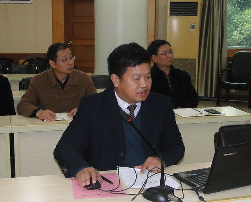 会上,副校长陈春生从“主要做法”、“存在不足”、“改进措施”、“自评结论”四个方面以PPT的形式向专家组一行作了详细的工作汇报。