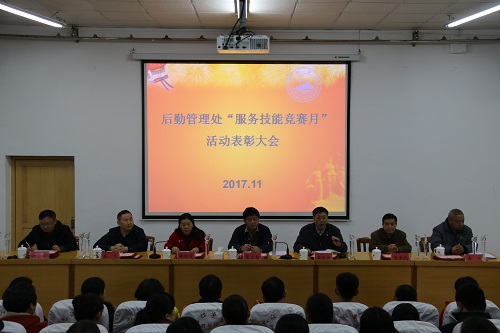 为深入开展“两学一做”学习教育实践活动,提升后勤服务的质量和水平,后勤管理处于今年开展了首届服务技能竞赛月活动。11月30日下午,后勤管理处召开“服务技能竞赛月”活动表彰大会,副校长夏启国出席会议并讲话,后勤管理处全体职工参加会议,会议由后勤管理处处长姜东升主持。