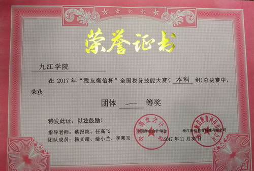 全国税务技能大赛总决赛团体一等奖的荣誉,再次展现并塑造了九江学院会计学院学子的风采与自信。但同时,通过该平台在全国范围内的竞赛交流,我们看到了自身的不足,学院将以此为契机进一步加大课程教学改革力度,进一步提升学生实践动手能力与综合素质。